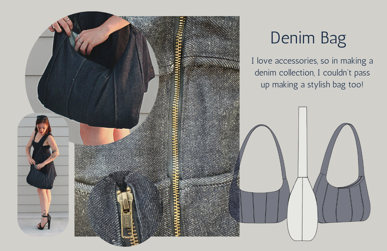 For my CAD class during my Junior Year, after learning how to use the program CLO 3D to digitally pattern, I created this denim outfit. Then, after editing the patterns, I printed out each skirt pattern piece to bring this digital design to reality.